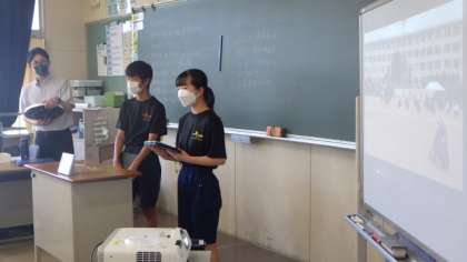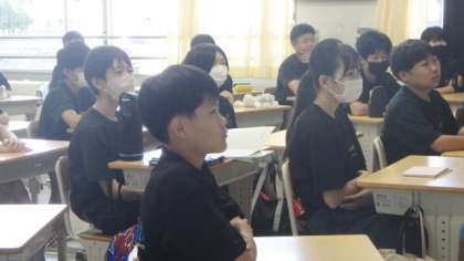 7月6日(木)、3年生の代表が1年生の各クラスを訪れ、体育祭で実施する「パフォーマンスバトル」の説明をしてくれました。過去の映像をみせながら、どのような取り組みかを伝授しました。学年ごとに曲を決め、クラスの独創性を生かしたダンスなどが披露されるパフォーマンスバトルは、コロナ禍で生まれた本校の体育祭の目玉であり、新たな伝統です。