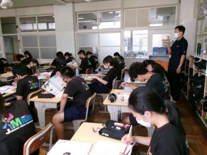 本日、今年度から学校アドバイザーを務めていただく井上様に来校していただきました。授業を参観していただき、その後、意見交換を行いました。「とてもいい雰囲気で授業をしていますね」と、生徒の様子を褒めていただきました。
