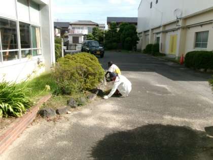 8月31日(木)、夏休み最終日。玄関前の植え込みの雑草を、公務手のお二人がきれいに取り除いてくださっています。9月からは高校の先生など、たくさんのお客さんが訪問されるので、気遣って整備してくださいました。西門へ行くと、新しい門に取り換えられています。壊れかけた門を直しながら使ってきましたが、明日からはきれいな門が生徒たちを迎え、見送ります。東門周辺では、教頭先生と校内整備員のお二人が、気持ちよく生徒たちが登下校できるよう、植え込みの剪定や草取りをしてくださっています。暑い中、夏休みの間にこつこつと、学校周辺やグランド、校内の植え込みなどの整備を続けてくださいました。日を浴びながら、「ここの植え込みを剪定するのが、今年の夏休みの最後の目標です」と笑顔で話してくださいました。感謝、感謝です。