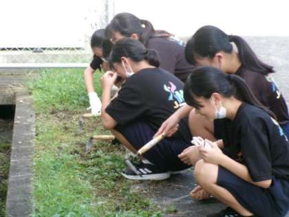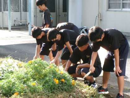 先週の水曜日同様、今朝も生徒会役員の呼びかけにこたえてくれた生徒たちが、ボランティア清掃を行いました。15分程度の活動でしたが、校内や学校周辺がとてもきれいになりました。実際に、いつもの清掃場所とは違うところで草取りをすると、その大変さが身にしみます。校内整備員さんや公務手さんなどが、美しい環境で生徒が生活できるように草刈りや木々の剪定をしてくださる姿。これを当たり前の風景にするのではなく、感謝し、自分ができることは進んで行える美里中学生を目指していきましょう。