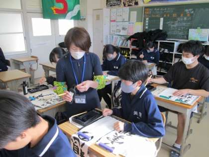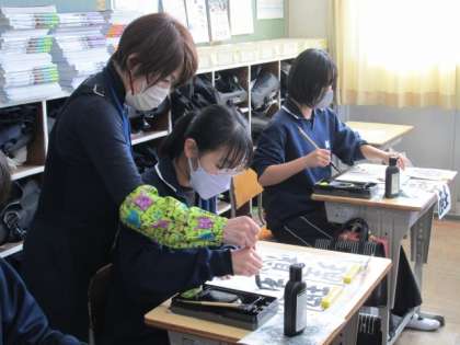 5時間目終了後、委員会が行われました。また、3年生の国語では講師を招いて書写の授業が始まりました。書き初めの練習を重ねていきます。