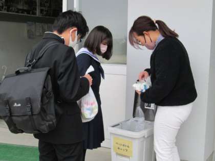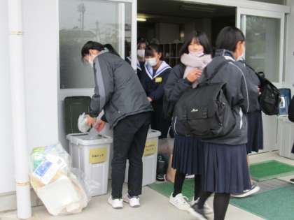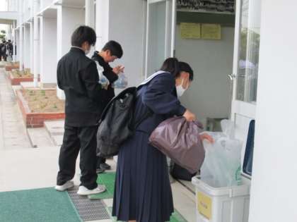 福祉委員会が12月5日から8日まで、WCP活動を行います。今日が初日です。たくさんの生徒が協力してくれました。今回、この日程で実施するのは、三者面談で来ていただく保護者の皆さんにも協力をお願いするためです。ペットボトルキャップはポリオワクチンの購入に、アルミ缶と牛乳パックは盲導犬育成費に役立てられます。三者面談の際に持ってきてくださる場合は、昇降口に設置してある回収ボックスに入れてください。