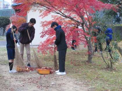 先週に引き続き、今朝、落ち葉清掃ボランティアがたくさん集まって活動してくれました。美化委員会の呼びかけに応えてくれた皆さん、ありがとうございます。寒い朝でしたが、自主的に頑張る生徒の姿を見て、心が温かくなりました。