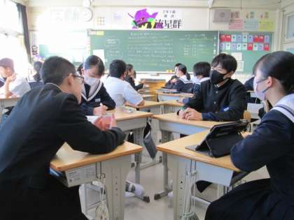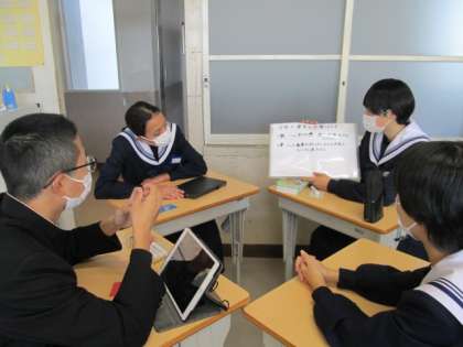 水曜日の朝、放送による太田先生の楽しい?お話と掛け声でミサトークがスタート。スムーズに準備して話し合いが進んでいきます。互いの意見を聞き合う姿が定着してきました。