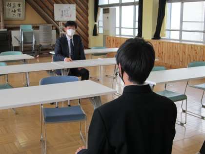 3年生は、今週の水曜日から3日間、教育相談会を行いました。公立高校受検に関する内容を、担任と生徒、保護者で話しました。また、面接練習が朝の会前や帰りの会後などに行われています。