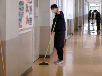 今日明日の2日間、午後の時間を使って、3年生が愛校活動をしてくれます。今日は、3年生の教室と1・2年生フロアの廊下をきれいに掃除し、ワックスをかけてくれました。とてもきれいになり、感謝です。