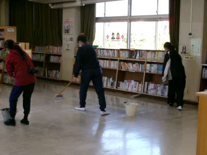 今日も、3年生が卒業を前に愛校活動を行ってくれました。音楽室や理科室などの特別教室をきれいに掃除し、ワックスもかけてくれました。心も教室もピカピカです。