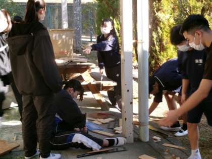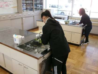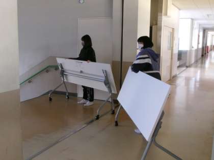 2日間に渡って、3年生が行ってくれた愛校活動。今日も朝早くから3年生が登校し、昨日ワックスがけのために廊下に出していた机やいすを元通りにしてくれました。きれいになった特別教室や廊下階段をみて、改めて3年生に感謝です。