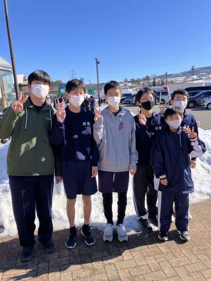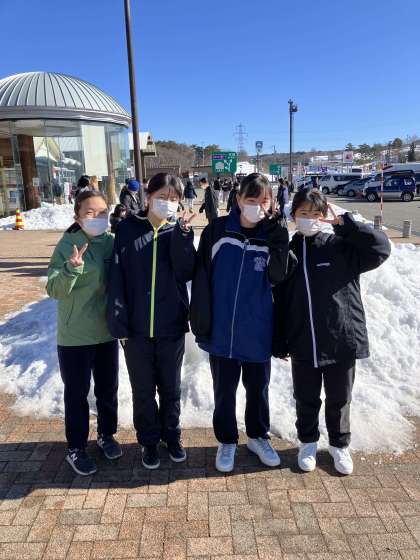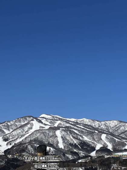 風は冷たいですが、天気は良好。きれいな雪山に歓声があがります。