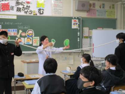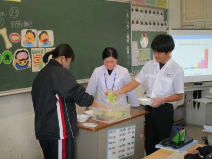 本校の栄養教諭による食育の授業が、1年生対象に行われました。「一日にどのくらいの野菜を食べればいいのだろう」という学習テーマのもと、給食などを例に学びました。