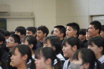 引き続き行われた卒業式の全校練習では、歌声が体育館の屋根まで届く勢い。熱が入っています。