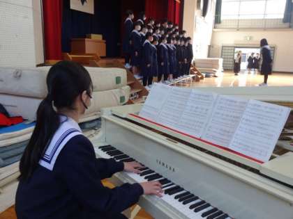 来週行われる生徒会役員選挙に向け、立候補者が給食の時間に各教室を回って、決意表明をしています。また、同じく来週、1年生も2年生も学年合唱コンクールを実施します。今回は、学年で決められた同じ曲を全クラスが歌います。本番に向けて、各クラスで練習が進められています。