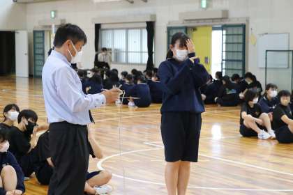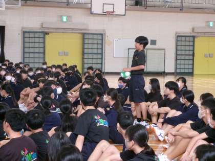 朝は雨風が強く、制服が濡れてしまった生徒が多くいたので、制服を脱いでジャージやTシャツで過ごしてよいことを伝えました。下校時になっても制服が乾かない生徒は、制服は持ち帰り、ジャージなどを着ての下校となりました。