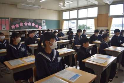 先週金曜日の入学式・始業式、学級などでの1年生の様子を掲載します。とても素敵な表情で歌をうたっている姿が印象的でした。話もきちんとした姿勢で聞けています。代表として誓いの言葉を述べてくれた生徒は、壇上で大変堂々とした立派な様子でした。