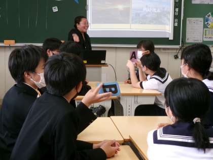 英語の授業では、今年度から本校に勤務していただくALTが、生徒との楽しそうに関わりながら授業を進めています。