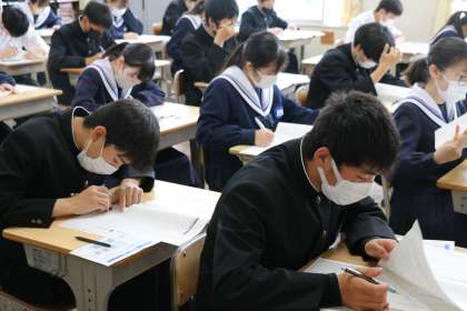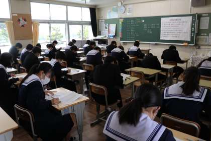 3年生が全国学力学習状況調査に取り組みました。