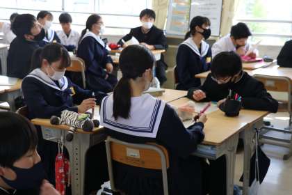 4月19日(金)の6時間目は学活の時間。各クラス、体育祭での目標やクラスとして目指すものを話し合っていました。パフォーマンスバトルの役割分担をしたり、クラス旗を作成したりする様子も見られました。