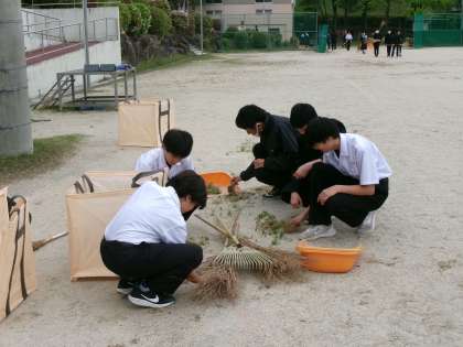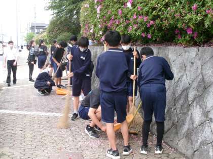4月23日(火)、環境委員会の呼びかけで集まった生徒たちが、学校周りやグランド、花壇などの清掃を行ってくれました。春になって生えてきた草で覆われた花壇や、雨風で散った花びら・葉っぱで覆われた道がとてもきれいになりました。ありがとうございます。