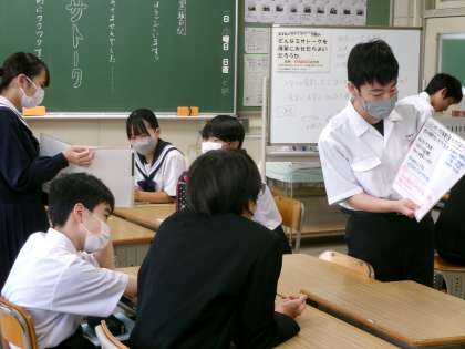 朝、2・3年生はミサトークを行いました。1年生は、来週の水曜日に3年生の取組を見学してから、ミサトークをスタートするそうです。先輩の姿を見て、後輩が学びます。