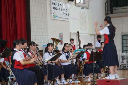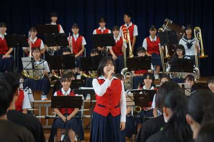 6月20日(木)の午前中、文化部発表会を体育館で実施しました。吹奏楽部は1年生を加えての校歌演奏から始まり4曲披露し、最後の「青と夏」は観客を巻き込んで盛り上がりました。美術部は先生の似顔絵クイズですご技を見せ、活動の様子を動画で紹介してくれました。クラフト部は、短時間で風船アートを完成させて拍手を浴び、作品を紹介する動画は実物を見るのが楽しみになるものでした。家庭部は自分たちでつくった甚平、ゆかたを着て登場。ダンスやランウェイを歩く演出で会場から拍手喝采。情報科学部はタイピングの妙技を披露し、専門職かのような動画を披露し、空気砲の実演も行いました。