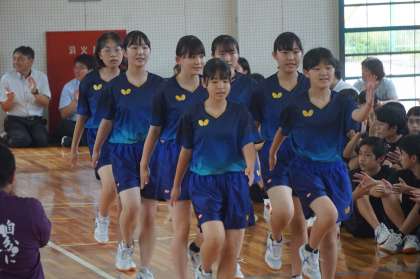文化部発表会に続き、午後は壮行会を行いました。大勢の保護者に見守られながら、運動部と吹奏楽部が入場行進。堂々とした各部の決意表明へと続きます。休憩をはさんで、1・2年生からのエールと全力校歌。見事でした。一生懸命な姿が、声が、歌声が感動的でした。3年生全員による選手宣誓は、前に立っているのがやっとで、熱いものがこみ上げてきました。生徒たちの表情をみていると、全員が思いっきり力を出し切っているのが伝わってきました。美里の誇り、ここにあり!