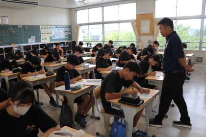 今日は、「ハートメディアGOODデー」。朝、生徒たちは「生活のリズム」と「レジリエンス」をテーマに学びました。生徒たちは保健だよりを活用して、自分のメディア利用時間を確認しました。また、レジリエンスとは落ち込んだ心が立ち直る力であることや、レジリエンスを支える心がどういうものか知り、自分の強みは何かを考えていました。