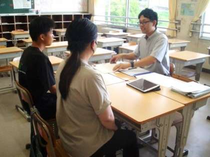 現在、三者面談を行っています。1・2年生は全員対象、3年生は希望制で実施しています。3年生は、10月と12月に全員を対象とした三者面談があるため、今回は希望制としています。