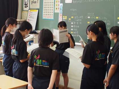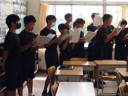 昼放課、2年生の教室では合唱練習をする様子がみられました。少しずつ、合唱コンクールに向けた取り組みが進んでいます。音楽の授業では、大学生ボランティアが合唱のパート練習で生徒と一緒に歌ってくれており、生徒たちはうれしそうに活動していました。