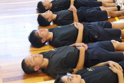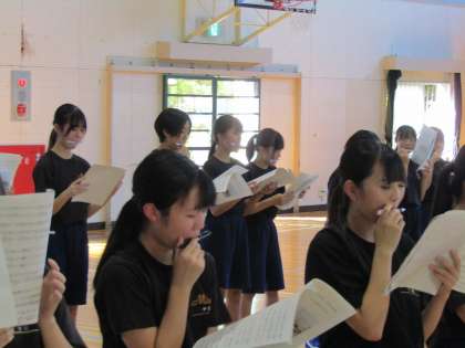 11月に実施する合唱コンクールに向け、声楽家の方を講師としてお招きし、指導会を実施しました。今回は発声や体の使い方、学年合唱について、学年ごとに教えていただきました。各学年50分間、体育館で指導していただく予定でした。しかし、季節はずれの暑さとなったため、体育館での学年全体の指導会は20分間とし、残りの30分間は講師の先生に各教室へ来ていただき、クラスごとにアドバイスをしていただきました。
