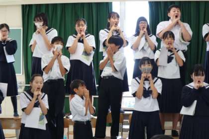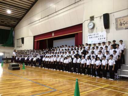 今日から、合唱コンクールに向けた特別日課が始まりました。各学級での練習に加え、体育館で学年合唱の隊形や移動の確認を行っていました。