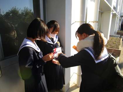 本日から21日(木)まで、福祉委員会の呼びかけで「赤い羽根共同募金」を行っています。登校時に、昇降口で福祉委員が対応しています。