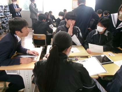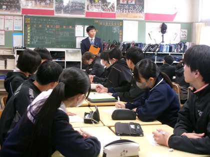 3年生のクラスで、市役所の職員の方をお招きして、社会の授業を行いました。これは、11月20日に行った総合的な学習の時間の講演を生かした内容で、豊田市の活性化のためのアイデアを提案しました。代表して「豊田スタジアム周辺の活性化」「歩道の拡張・増設・ガードレール配備」「環境モデル都市をPR」という3つのアイデアが提案され、講師の方に講評していただきました。時間の都合などで、代表クラスの取組となりましたが、他のクラスの提案も、市役所の職員の方に届けます。