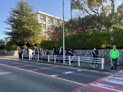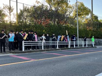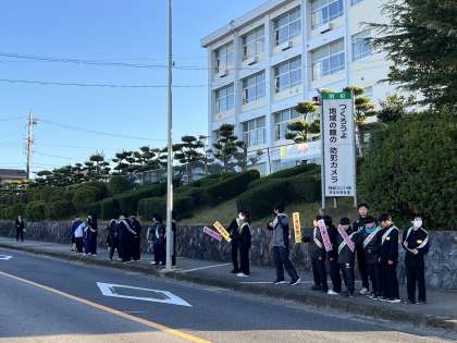 12月2日(月)7:40から、有志による「交通安全運動」を実施しました。ボランティアとして集まった生徒たちは、西門に集合し、登校する生徒や車を運転している方々に交通安全を呼びかけました。