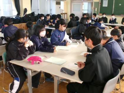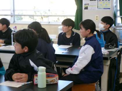 12月2日(月)、委員会などが行われました。生徒会役員・議員・生活委員・級長には、ウォームビズの在り方について意見交換をしてもらいました。また、美化委員会は、新たな取組について話し合い、木曜日の朝に美化活動を行ってくれるそうです。美里の誇りの一つ、自主的な活動が委員会から起きたこと、うれしい限りです。