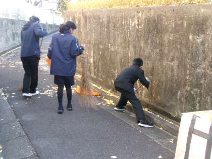 特別支援学級の1・2年生が、東門周辺の落ち葉掃除をしてくれました。これは作業の時間に行ってくれた活動で、昨年に引き続いての取組です。この土日の強風で、道をおおっていた落ち葉を、とてもきれいに掃除してくれました。登下校で通る生徒や近所の方々は、とても喜んでいると思います。ありがとう。