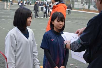 12月1日と8日の両日、豊田みよし中学生ソフトテニス大会が行われ、男女のソフトテニス部が参加しました。その中で、女子の1年生ペアが3位に入賞しました。おめでとうございます。