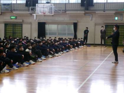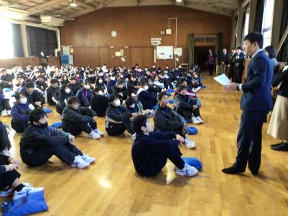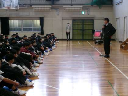 いよいよ、24日から冬休み。昨日、今日で、各学年が集会を行い、冬休みの生活や学習について担当の先生から話を聞きました。