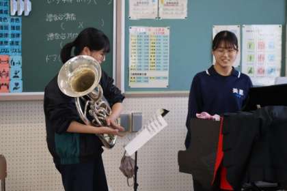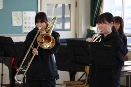 12月24日と25日、吹奏楽部が第一音楽室でクリスマスコンサートを行います。観客は教職員です。24日は、アンサンブルコンサートで、今後開催される大会で披露する曲を演奏してくれました。