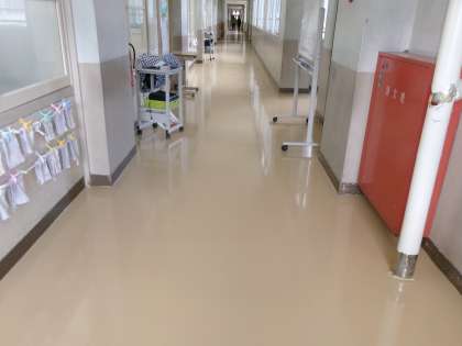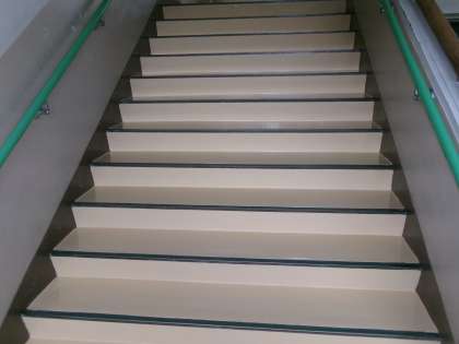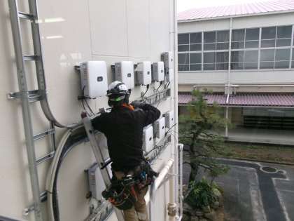 冬休み中に、西階段および校舎2階廊下の塗装を行いました。ずいぶん色あせた状態からたいへんきれいになっています。また、体育館および武道場のエアコン取り付け工事が終了し、今は校舎屋上に太陽光パネルの設置工事を行っています。