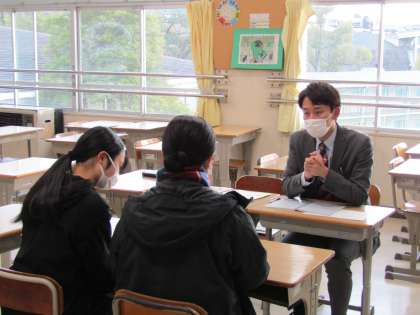 1月8日から10日まで、3年生の教育相談会を実施しています。公立高校受検などについて担任の先生と生徒・保護者がお話しています。1・2年生が部活動をしている日があり、駐車場などでご迷惑をおかけしています。