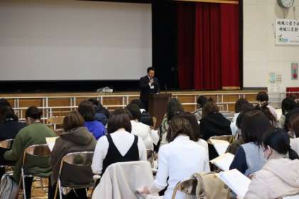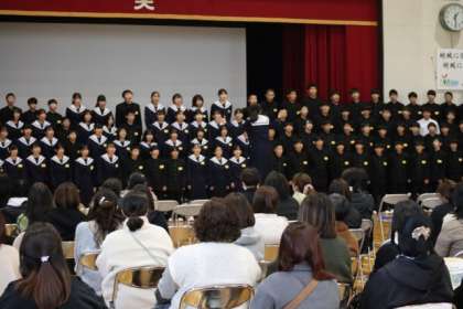 来年度の新入生保護者を対象に、入学説明会を体育館で実施しました。新しく取り付けたエアコンを使い、暖かい会場での説明会となりました。会に先立ち、1年生が「やってみよう」の学年合唱を披露しました。校長あいさつに続き、本校教育概要にを説明し、生活の心構えや集金・保健関係について話し、最後はスクールカウンセラーが「中学生が抱える悩みや不安」について講演しました。