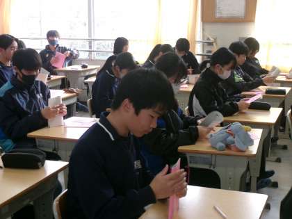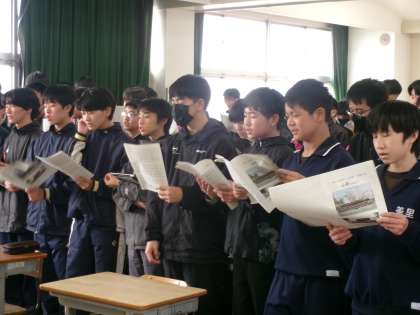 2年生自然教室のしおりが完成しました。生徒たちは、自然教室が近づいてきたことを実感しながら、しおりを眺めていました。3年生は卒業プロジェックトが本格的に動いています。それぞれの係で企画・運営に向けて活動するとともに、卒業式で歌う曲の練習にも熱が入っています。