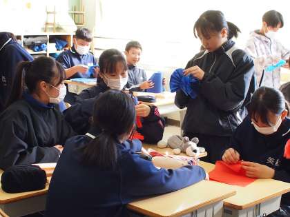 1・2年生が、3月初めに行う「卒業を祝う会」に向け、スタッフ会の活動に一生懸命取り組んでます。