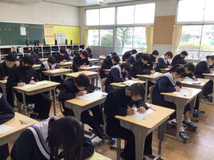 4月10日(木) 1・2年生学年集会の様子 ・3年生学力テストの様子