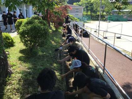 5月13日(火)、体育祭に向け、全校で草取りを行いました。