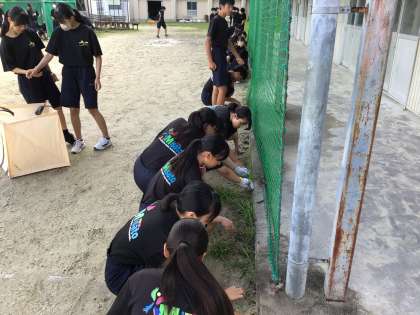 6/25(水)、生徒会主催によるグランドの草取り(ボランティア活動)を行いました。