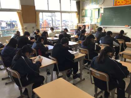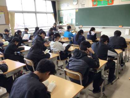 12/4(木)、朝の読書タイムの風景です。写真を撮る際のシャッター音が大きく響いてしまうほど、どのクラスも静かに真剣に読んでいます。