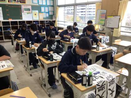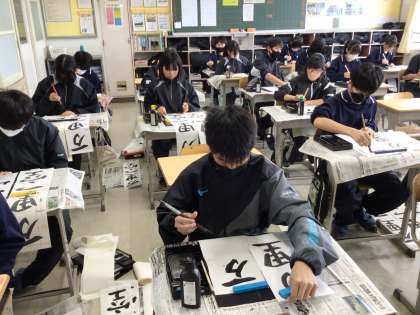 1/7(水)、冬休み明け初日、全校で書き初め大会を実施しました。
