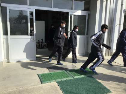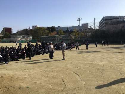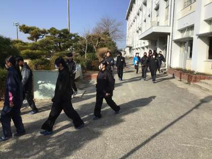1/19(月)、避難訓練を実施しました。防災担当教師より、ガスの種類によって避難時の姿勢が変わるなどの話があり、学びの多い時間となりました。