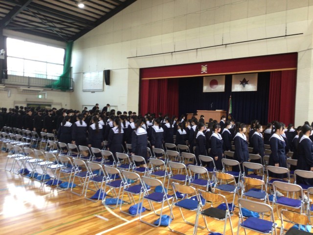 2/24(火)、3年生による卒業式に向けての練習が続いています。2時間目には、合唱隊形へ移動する際の確認を行いました。